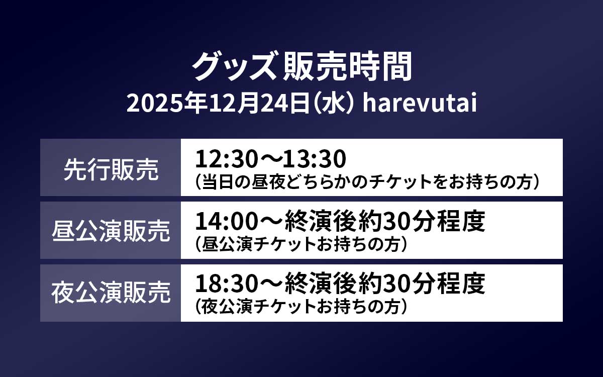 ※グッズは当日のチケットお持ちの方のみ購入可能です。購入可能時間はお持ちのチケットにより異なります。